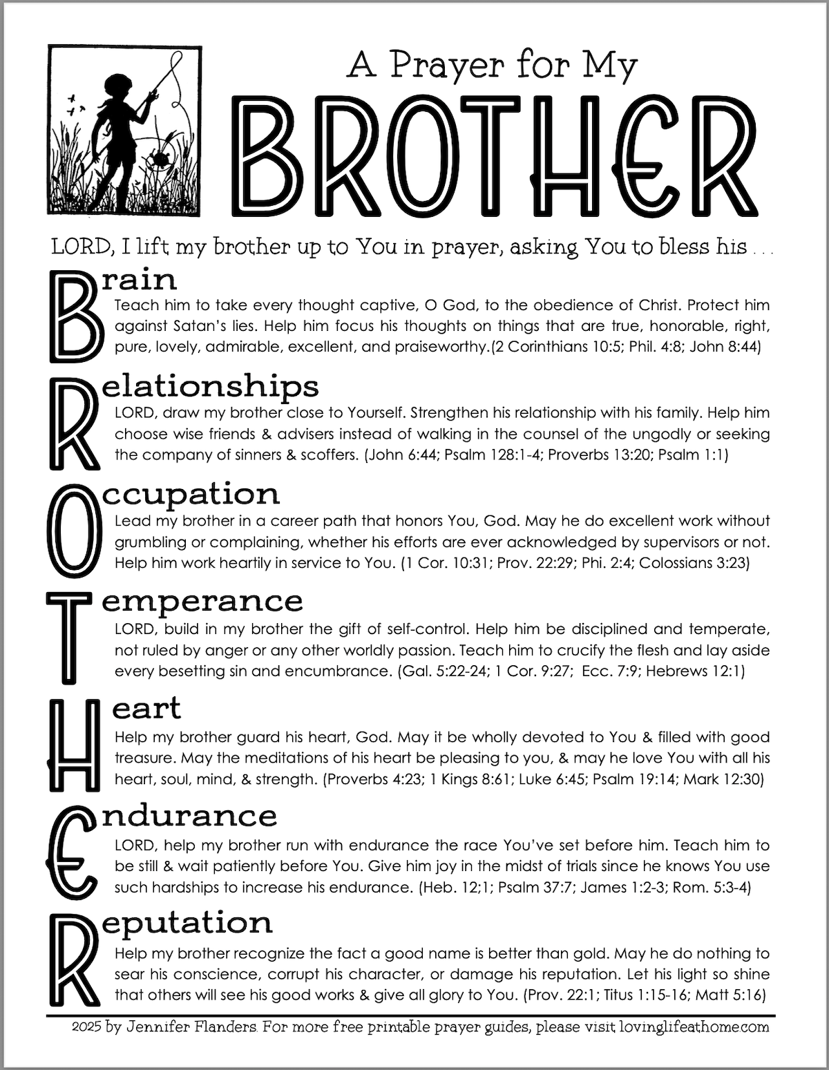 Want a free printable copy of this Prayer for Brothers guide? You’ve got it! Just click on the free download button below: